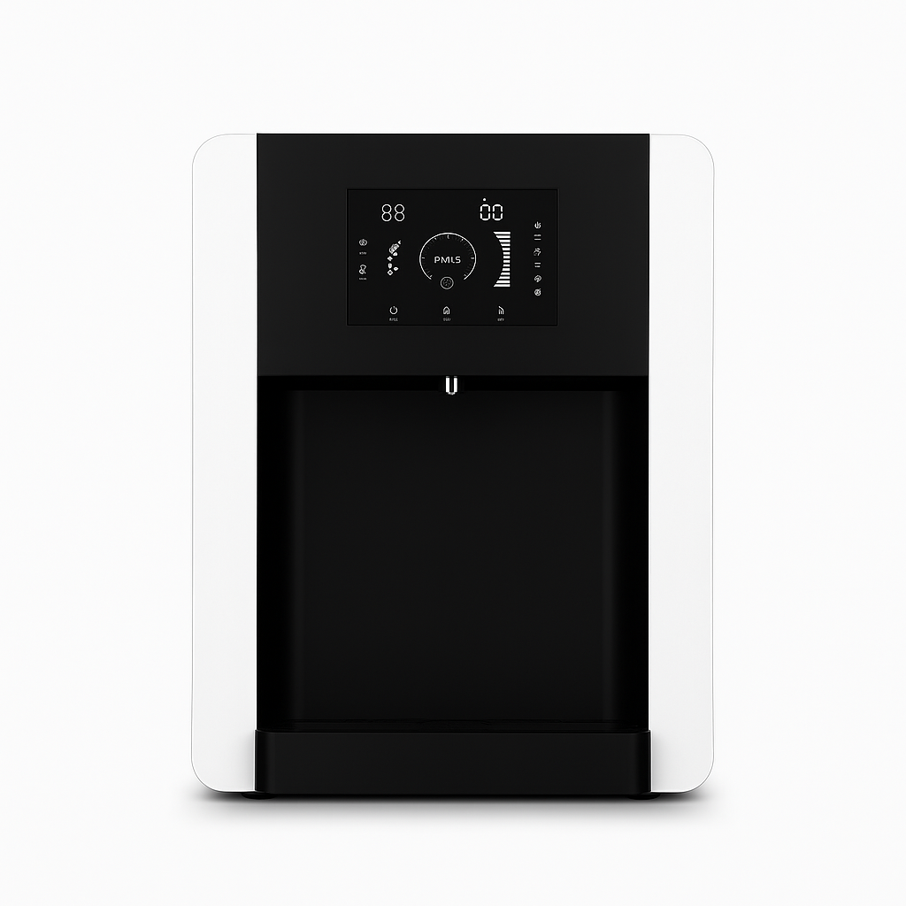 A self-sustaining, high-output atmospheric water generator designed for clean, alkaline hydration—no plumbing, no waste, just pure water from air.