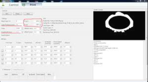 Custom Settings: Resolution, exposure, and layer thickness adjustments